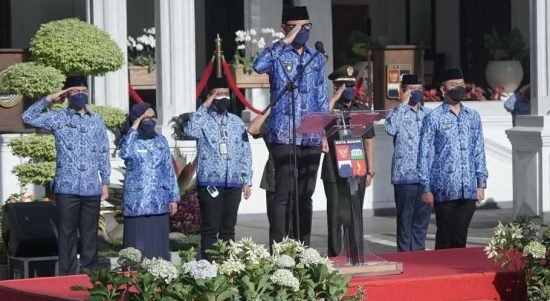 Bogor – Bima Arya, Wali Kota Bogor, memimpin HUT ke-50 Korps Pegawai Negeri Sipil (Korpri) Indonesia, Senin (29 Desember 2021). Bima menegaskan